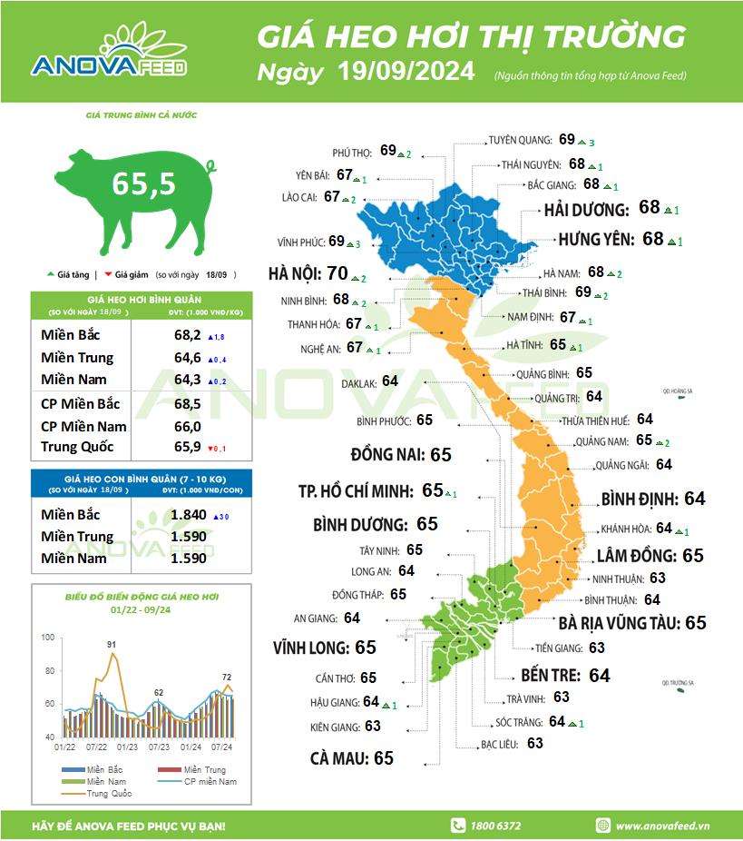 – Giá heo hơi hôm nay 19/09/2024, miền Bắc lên nhanh.
